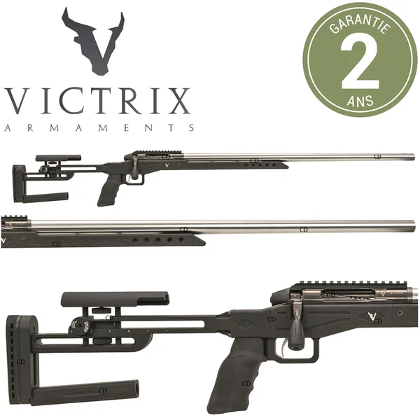 Dernier exemplaire ! *Garantie 2 ans.La série sport Victoria est dédiée à lunivers du tir sur cible.Cest une collaboration entre le design de spécialistes et des ingénieurs.Nous avons travaillé avec les meilleurs tireurs européens pour la développer.Le cur de cette carabine est basé sur notre système de culasse trois tenons de verrouillage testé et approuvé, allié à des canons benchmark de type match.A la différence des autres fabricants, laction canonnée est complètement intégrée dans de la résine époxy et de solides crosses.-Nos carabines sont fabriquées daprès des procédés uniques dans lindustrie de larmement.-Nos actions sont conçues avec de très faibles tolérances géométriques et dimensionnelles pour atteindre les plus hauts standards.-Lalliage utilisé AISI 630 permet datteindre de hautes exigences mécaniques.-Toutes les actions monocoups ainsi que les chargeurs sont équipés de notre système de culasse à trois tenons de verrouillage.-Le levier de culasse est fixé grâce à un système de pression qui le rend complètement sûr.-Cette carabine Sport Séries dispose dune crosse Target et dun rail de boîtier de culasse 20 MOA.-De nombreuses versions disponibles sur demande/commande spéciale (coloris, crosse, calibre,…)*Caractéristiques Techniques :-Calibre 308Win.-Longueur du canon : 32″ (81cm).-Pas de rayure : 10″.-Devant : Target.-Culasse : Culasse droitier/ Ejection à droite.-Poids : 6Kg890.-Catégorie C.*ARME SOUMISE A LA LEGISLATION : Carte d’identité + Permis de chasse OU Licence de tir valides OBLIGATOIRES.*Aucune expédition ne pourra être réalisée sans pièces justificatives.