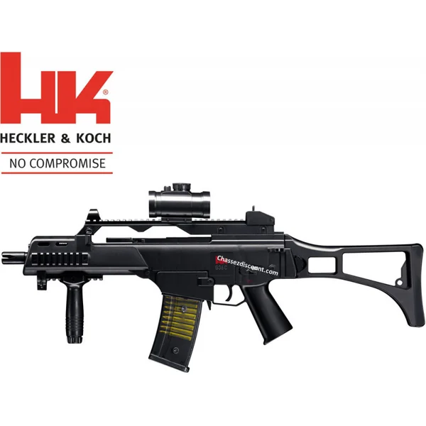 CARABINE G36C HECKLER & KOCK : Caractéristiques : -Pistolet à ressort calibre 6MM, -Longueur : 430/716mm, -Poids : 2030g environ, -Vitesse : NC, -Capacité :40 -Puissance 0.5 joules. *Livré avec un point rouge. Délai Moyen D’expédition : 2 à 5 jours. SOUMIS A LA LEGISLATION : CARTE D’IDENTITE OBLIGATOIRE.