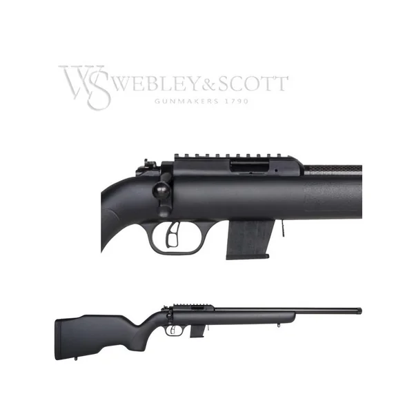 CARABINE WEBLEY & SCOTT 17 HMR CARBONE :*Garantie 2 ans.-L’alliance de la tradition armurière anglaise de Webley & Scott avec les nouvelles technologies au service de la précision. -Canon gainé carbone pour avoir les qualités d’un canon lourd en terme de rigidité, harmonie des vibrations et faible dilatation tout en gardant le poids d’un canon standard.-Carabine à répétition manuelle.-Chargeur amovible de 10 cartouches.-Canon 48cm gainé carbone pour plus de rigidité.-Canon fileté 1/20 pour le montage d’un modérateur de son.-Culasse munie de 2 griffes dextraction.-Rail picatinny weaver de 21mm.-Détente squelette.-Crosse synthétique noire de 355mm.*Prix de vente conseillé 2017 : 398€.*ARME SOUMISE A LA LEGISLATION : Carte d’identité + Permis de chasse OU Licence de tir valides OBLIGATOIRES.*AUCUNE LIVRAISON NE POURRA INTERVENIR SANS PIECES JUSTIFICATIVES.