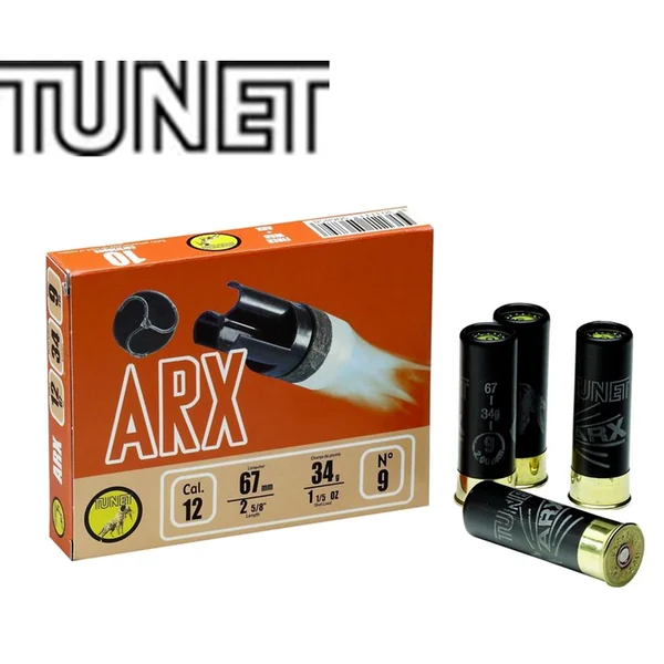 CARTOUCHES ARX TUNET PAR 10 : Caractéristiques : -Cartouches spécifiques, conçues spécialement pour une gerbe très étendue en premier coup. -Calibre 12.-Longueur : 67mm, -Culot : 16mm, -Poids : 34g, -Bourre : grasse ARX, -Sertissage : Rond, -Boîte de 10 cartouches. *Disponible en N°6 à 9. *MUNITION SOUMISE A LA LEGISLATION : Carte d’identité + Permis de chasse OU Licence de tir valides OBLIGATOIRES. *AUCUNE LIVRAISON NE POURRA INTERVENIR SANS PIECES JUSTIFICATIVES.