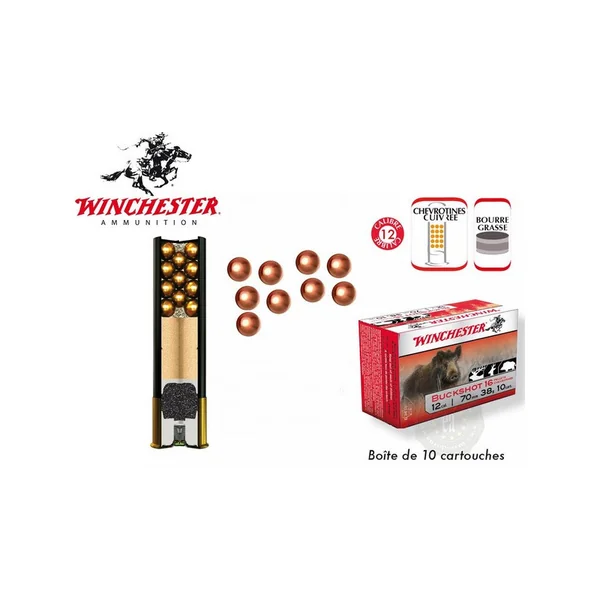 CARTOUCHES CHEVROTINE 12 GRAINS STANDARD 12/70 WINCHESTER PAR 10