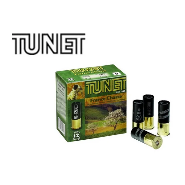 Cartouches de chasse traditionnelles, à bourre jupe, en calibre 20, de marque TUNET.
