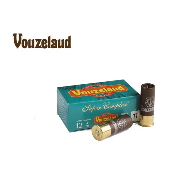 CARTOUCHES VOUZELAUD SUPER COMPLICE 70 CALIBRE 20 : Caractéristiques : -SUPER COMPLICE 70 est une surpuissante aux rendements plus ouverts. -Elle sera dune remarquable efficacité pour tous les tireurs qui utilisent couramment des 70 et qui ont des canons trop chokés.-Calibres : 20.-Chambre : 70mm.-Poids de plombs (en g) : 27.5g.-Hauteur du culot : 16mm.-Bourre VOUZELAUD à 2 éléments.-Fermeture : Etoile.-N° de plombs disponible : 5, 6, 7, 8, 9 & 10.-Bourre : Jupe. -Boîte de 10 cartouches. *MUNITION SOUMISE A LA LEGISLATION : Carte d’identité + Permis de chasse OU Licence de tir valides OBLIGATOIRES. *AUCUNE LIVRAISON NE POURRA INTERVENIR SANS PIECES JUSTIFICATIVES.