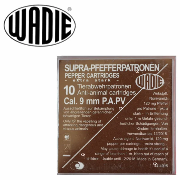 Cartouches Wadie 9mm PA PV Supra Pepper A Gaz Par 10