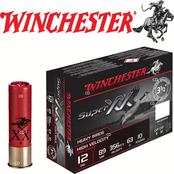 Cartouches de chasse, de marque Winchester, à forte charge (63g), chambrée en 89mm pour une très longue portée !