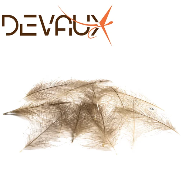 Ces plumes de croupion de canard sont triées et sélectionnées.