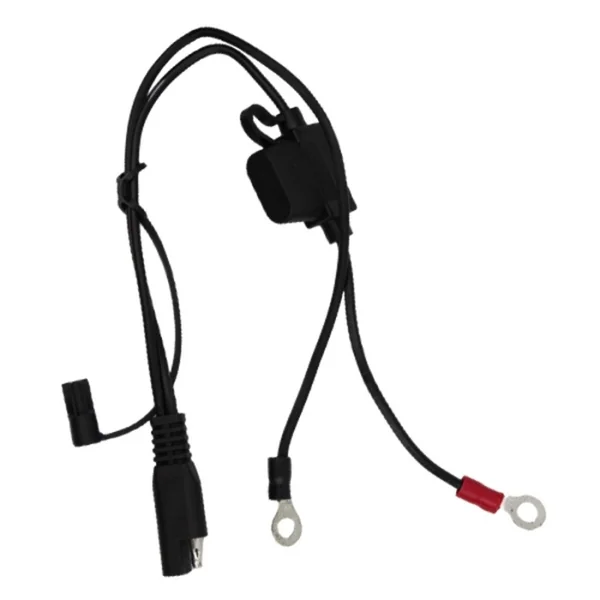 - Câble avec cosses rondes permettant une installation à poste. Particulièrement pratique pour recharger la batterie de votre bateau ou de votre moto pendant l’hiver sans l’enlever.