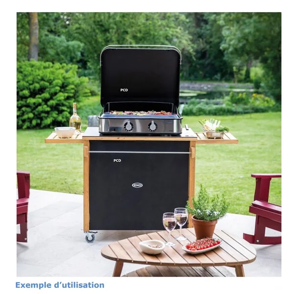 Découvrez ce chariot en bois et en HPL noir, de la marque française Eno, conçu pour porter votre plancha Eno.
