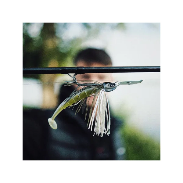 Un superbe chatterbait qui supporte tout type d’animation ; lancer-ramener classique, stop&go, en dent de scie…Il est constitué d’une palette brossée, d’un anneau soudé sur la palette pour être attaché avec une agrafe ou directement noué, d’une jupe ligaturée fermement, d’un solide et très piquant hameçon BKK et d’une attache type tire-bouchon pour armer votre trailer. Ce leurre ne contient pas de plomb.- Taille de palette S : Hameçon H1