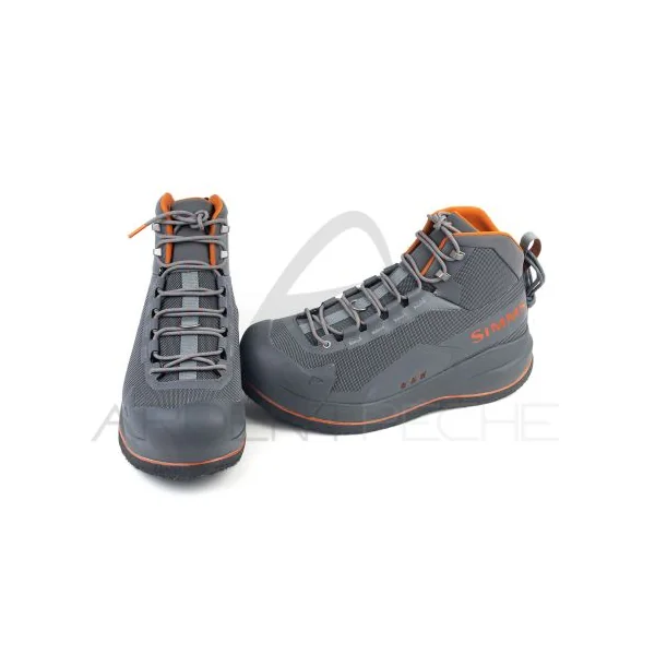 - La semelle extérieure est compatible avec les clous et crampons Simms Hardbite et Alumibite Star.