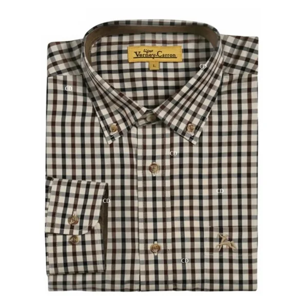 Chemise, avec opposition de matière à l’intérieur du col et des poignets, modèle Vivien, de marque Ligne Verney Carron.