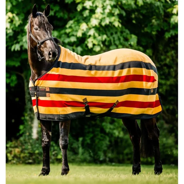 Ajoutez une touche d’élégance intemporelle à l’équipement de votre cheval avec la couverture polaire Newmarket Horseware®, reconnaissable à son motif à rayures emblématique. Ce modèle haut de gamme allie style classique et performances techniques, offrant à la fois confort, fonctionnalité et esthétique. Matière polaire premium : douce au toucher, cette polaire anti-boulochage conserve son aspect soigné lavage après lavage. Excellente respirabilité : favorise une évacuation rapide de l’humidité, ce qui en fait un choix idéal pour une utilisation post-exercice, en écurie, en transport, ou lors de compétitions. Action séchante efficace : la couverture permet un refroidissement progressif du cheval tout en maintenant sa chaleur corporelle. Entretien : Lavable en machine à 30 °C Séchage à l’air libre recommandé Conserve sa douceur et ses propriétés même après de nombreux lavages