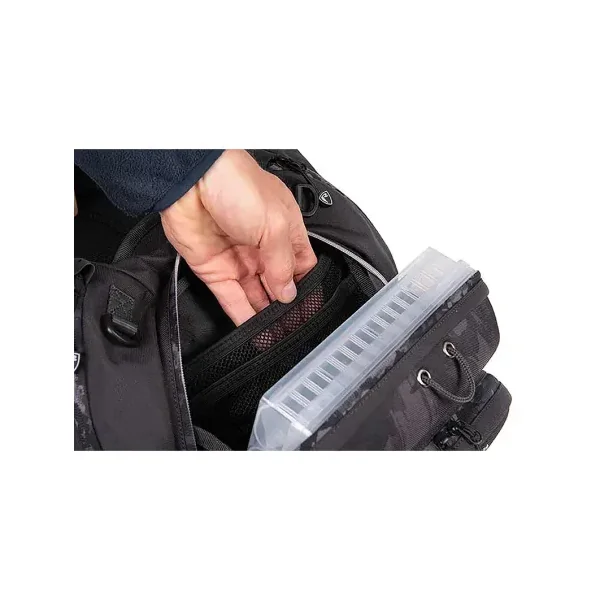 Les zones en maille respirante à l’intérieur du panneau avant et sur les bretelles assurent une excellente ventilation et un confort durable, même lors de longues journées de pêche. Le sac reste stable et agréable à porter, sans gêner les mouvements.