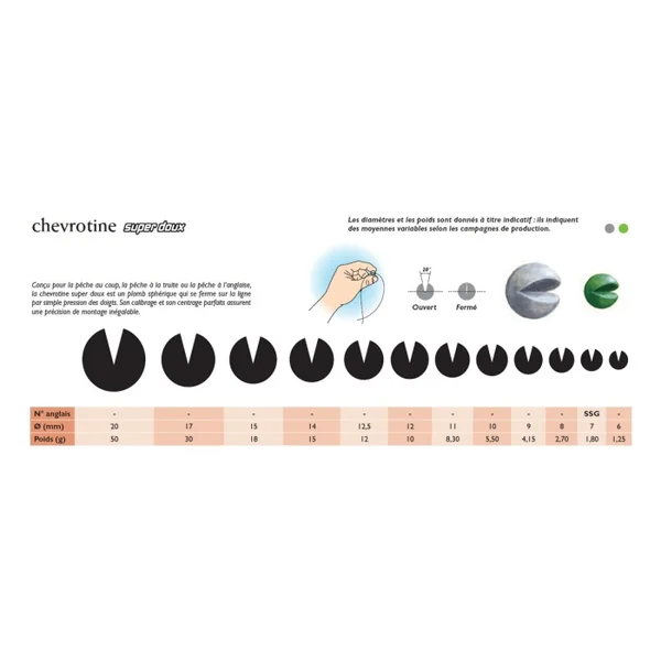 Conçu pour la pêche au coup, la pêche à la truite ou la pêche à l’anglaise, la chevrotine super doux est un plomb sphérique qui se ferme sur la ligne par simple pression des doigts. Son calibrage et son centrage parfaits assurent une précision de montage inégalable. Caractéristiques Chevrotines fendues plomb super doux vert 1 kg