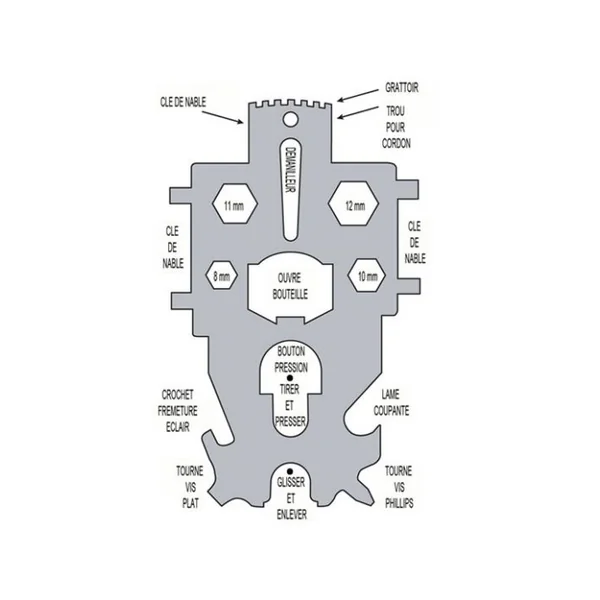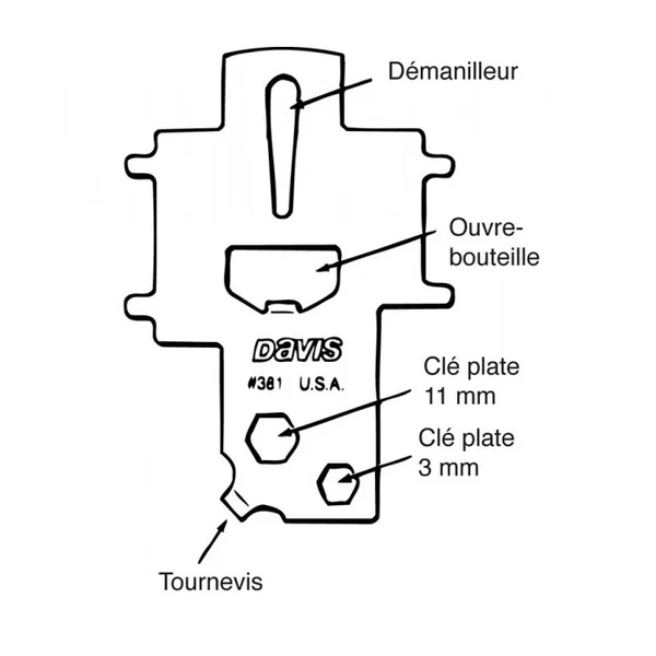 Clé universelle Topomarine pour nable Cette clé convient à tous les types de nables de pont : fente, ergots, trous, winch. C’est également un outil pratique sur lequel on trouve 4 clés plates 8/1011/12 mm, un démanilleur, 2 tournevis plats, un ouvre bouteille… Fabriqué aux U.S.A. dans un acier inox très dur 304.