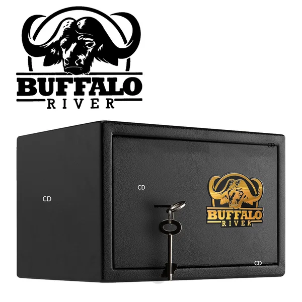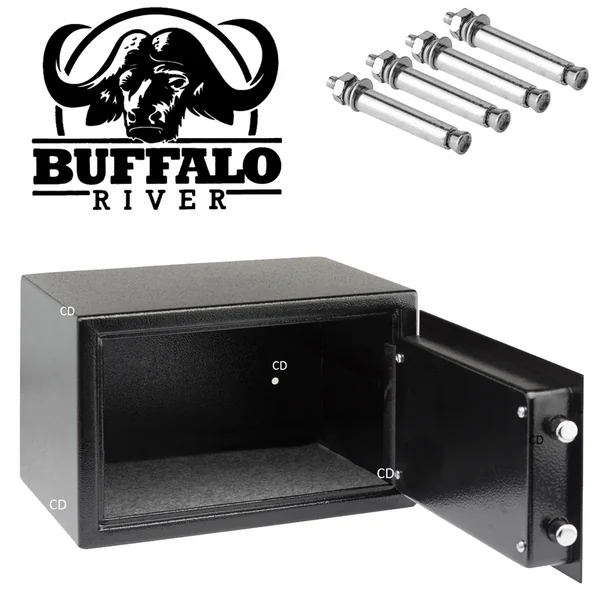COFFRE ARMES DE POING PREMIUM BUFFALO RIVER :Caractéristiques :-Coffre fort, à clef, pour armes de poing, de marque Buffalo River.-Serrure à clef unique avec double tenons.-Porte acier 3mm.-Sol du coffre tapissé de moquette grise.-Livré avec un jeu de chevilles à béton de fixation et 2 clefs.-2 points de fermeture.*Dimensions extérieures :-Hauteur : 23cm.-Largeur : 35cm.-Profondeur : 25 cm.-Volume de 20 Litres.-Epaisseur de la tôle : 3mm.-Poids : 7Kg900.*Dans le cadre de la détention d’armes de catégorie B, il est obligatoire de posséder un coffre pour maintenir les armes en question hors de portée des tierces personnes. D’une façon générale, il est fortement conseillé de mettre ses armes, quelques soient leurs catégories (B, C ou D) hors de portée des enfants et d’éventuels intrus ou voleurs en les stockant à l’abri dans un coffre pour armes. Ce coffre doit impérativement être fixé au sol ou au mur.