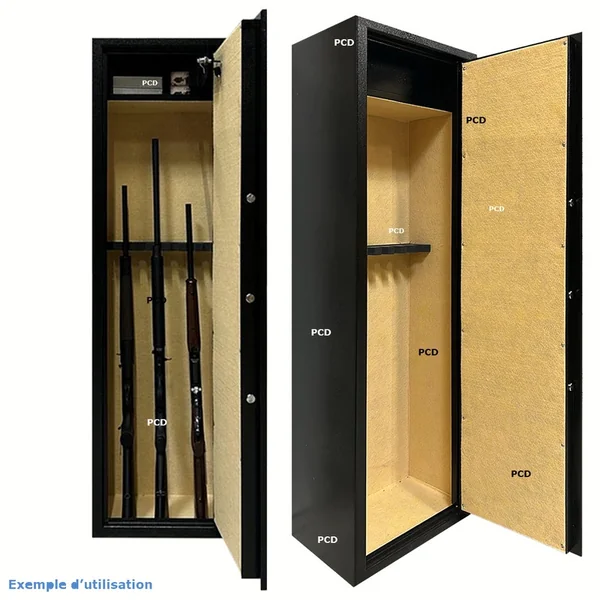 Coffre-fort d’une capacité de 8 armes, avec moquette intérieure.