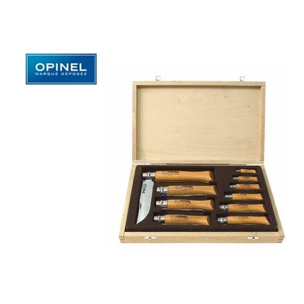 COFFRET COLLECTION 10 COUTEAUX OPINEL : Caractéristiques : -Superbes couteaux OPINEL. -Lame acier carbone, -Manche en hêtre, -Système de verrouillage de la lame VIROBLOC. *Du n° 2 au n°12.