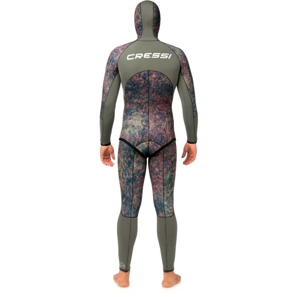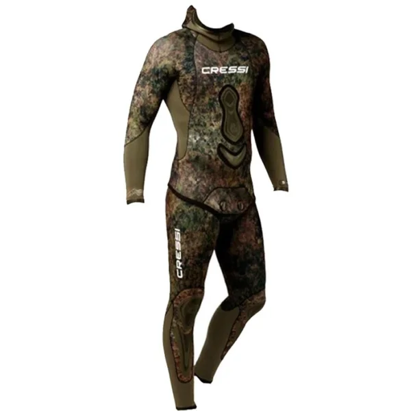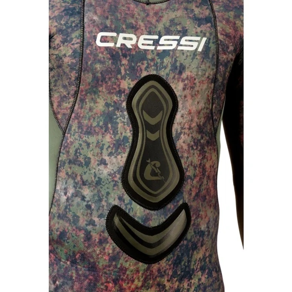 Lorsque l’eau est mouillée, elle change de couleur accentuant le mimétisme. Combinaison humide créée avec le nouveau camouflage exclusif vert / marron cressi, conçu par ordinateur pour rendre plus difficile la création d’images solides par la proie, confondant ainsi le porteur avec l’arrière-plan. Coupe anatomique préformée. Veste avec renfort matelassé sur la poitrine. Peau lisse avec joints d’ étanchéité sur la cagoule, les poignets et les chevilles. Doublure anti-abrasion renforcée sur la poitrine et les genoux. Pantalon taille haute avec joints d’ étanchéité sur les chevilles et la taille.