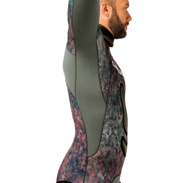 Une combinaison technique conçue pour offrir un camouflage efficace, un excellent confort thermique et une grande liberté de mouvement en chasse sous‑marine.