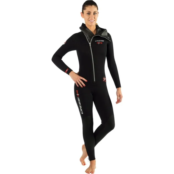 Combinaison Cressi Diver Lady 7 mm – Médium Monopièce en néoprène doublé deux faces de 7 mm avec cagoule attenante et une fermeture sur le devant, récemment modifiée techniquement et esthétiquement.