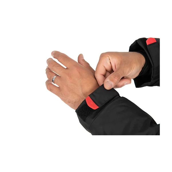 Les mitaines néoprène intégrées ainsi que le système de serrage aux poignets avec des sangles velcro caoutchouc logotées permet d’isoler vos mains du froid et vos avant bras de l’eau.