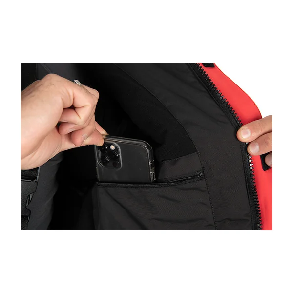Pour vous protéger du froid, la veste est équipée de poches chauffe-mains zippées, d’un col avec une doublure en micro polaire, et d’un rabat interne le long de la fermeture à double voie pour faire barrage au froid. Pour sécuriser votre téléphone ou vos papiers, vous disposez d’une poche portefeuille zippée isolant son contenu de l’eau. Le cordon de serrage à la taille isole votre d’eau des éventuels courants d’air.