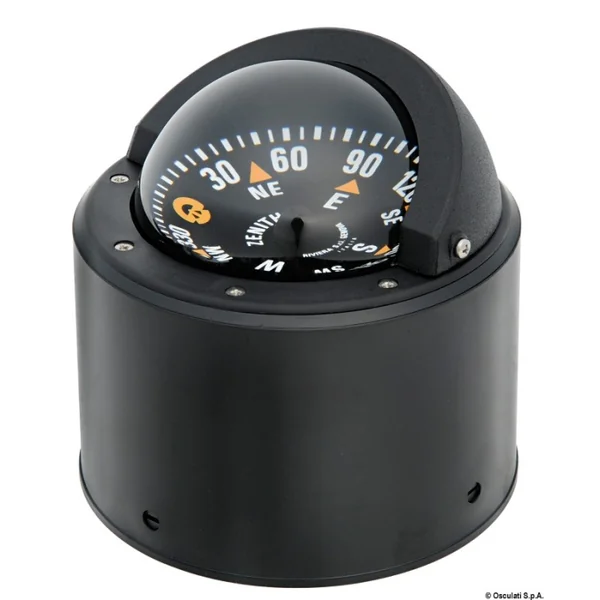 Compas Riviera Zenit noir en fût rose plate Conseillé pour des bateaux jusqu’a 8 m . Suspension cardan jusqu’à 35°, compensateurs incorporés, rose noire avec graduations de 5°. Disponibles aussi pour l’hémisphère austral. Caractéristiques Compas Riviera Zenit noir en fût rose plate