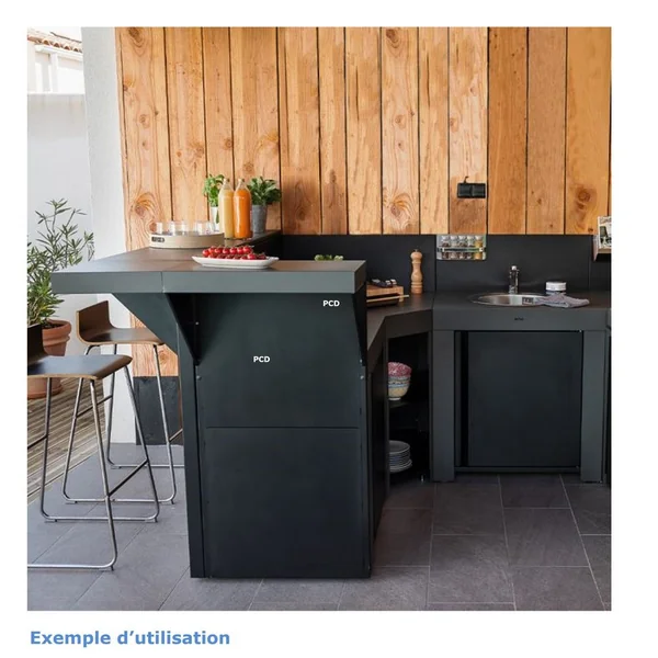 Certifié d’origine France garantie, votre cuisine extérieure sera ainsi parfaite sur votre terrasse. La finition élégante en acier galvanisé thermolaqué sera idéale pour un design parfait.