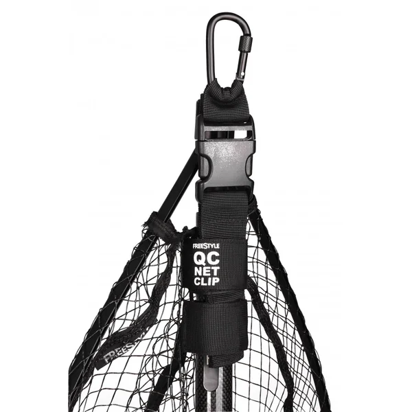 Le connecteur Freestyle QC Net Clip est facile à utiliser et s’adapte à de nombreuses épuisettes. La connexion au sac à dos ou à la ceinture se fait simplement grâce à un mousqueton verrouillable en aluminium de grande qualité. La sangle de la double poignée de l’épuisette est doublée d’une surface en néoprène à haute friction pour créer un maintien solide sur la surface de la poignée.