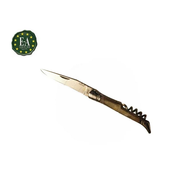 COUTEAU MANCHE CORNE 9 CM : Caractéristiques : -Superbe couteau manche en corne blonde, -Tire bouchon, -Mitres laiton, -Munie d’une lame en acier trempé. -Longueur de la lame : 9 cm.