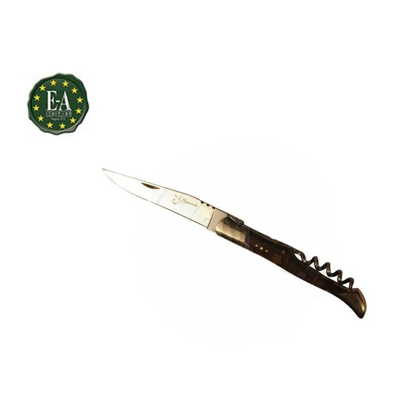 COUTEAU MANCHE PACKWOOD 9CM : Caractéristiques : -Superbe couteau manche en packwood, -Tire bouchon, -Mitres laiton, -Munie d’une lame en acier trempé. -Longueur de la lame : 9 cm.