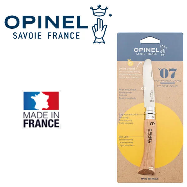 COUTEAU MON PREMIER OPINEL N°7 :Caractéristiques :-Superbe couteau OPINEL.-Lame inox à bout rond.-Manche en hêtre.-Système de verrouillage de la lame VIROBLOC.*Prix de vente conseillé 2018 : 11€.*ARME SOUMISE A LA LEGISLATION : Carte d’identité OBLIGATOIRE.*AUCUNE LIVRAISON NE POURRA INTERVENIR SANS PIECE JUSTIFICATIVE.