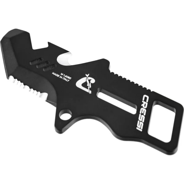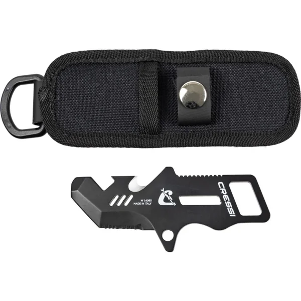 Couteau Plongée Cressi Kai Mini Multi-outil professionnel compact pour les plongeurs, de fabrication italienne, avec lame et poignée en acier martensitique inox w1 4060, de dureté hrc 55/56 – offrant une lame extrêmement affûtée et affinée.