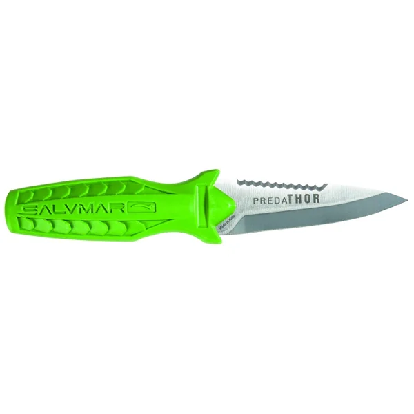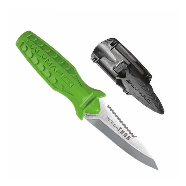 Couteau Salvimar Predathor – Green Acid Couteau très compact d’une longueur maximale de 16 cm avec étui pour une utilisation chasse sous marine ou apnée.