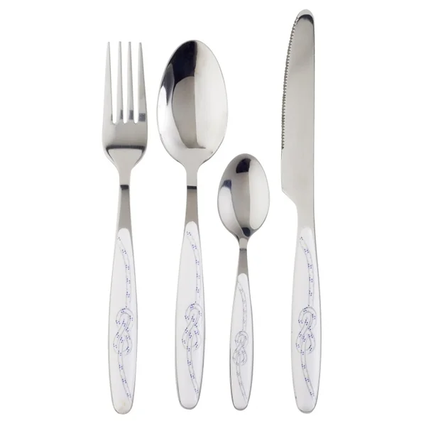 Colori blanc avec motif nœud marin bleu et gris. Avis Couverts Plastimo Écrivez votre avis