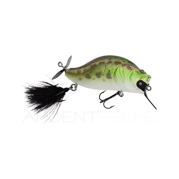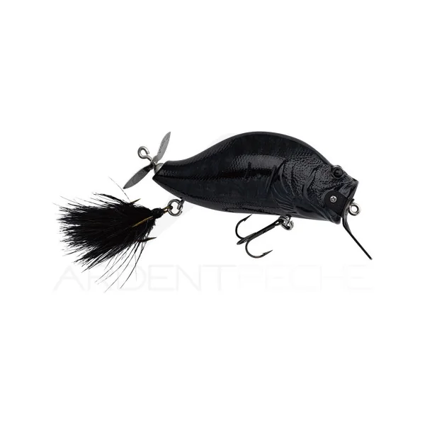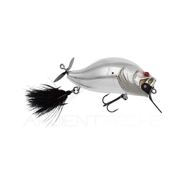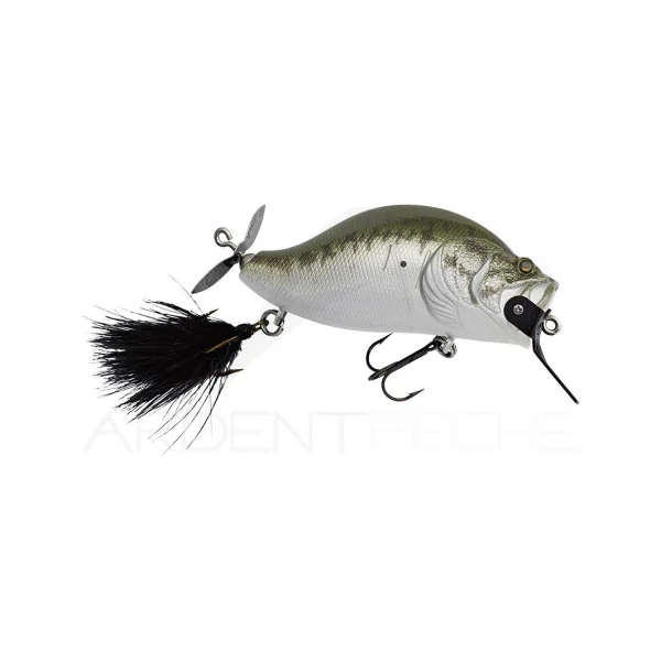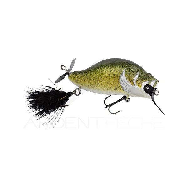 Cest un gros crankbait de surface qui conserve sa haute performance aussi bien en récupération lente que rapide. Ceci grâce à sa bavette métallique qui capte parfaitement leau et maintient le ZACRAWL SC dans une vague régulière qui attire tous les chasseurs de surface. Lhélice de queue produit des éclaboussures ainsi quun son métallique. La mèche de plumes noires joue un effet de teaser, améliorant encore lattractivité de ce leurre.