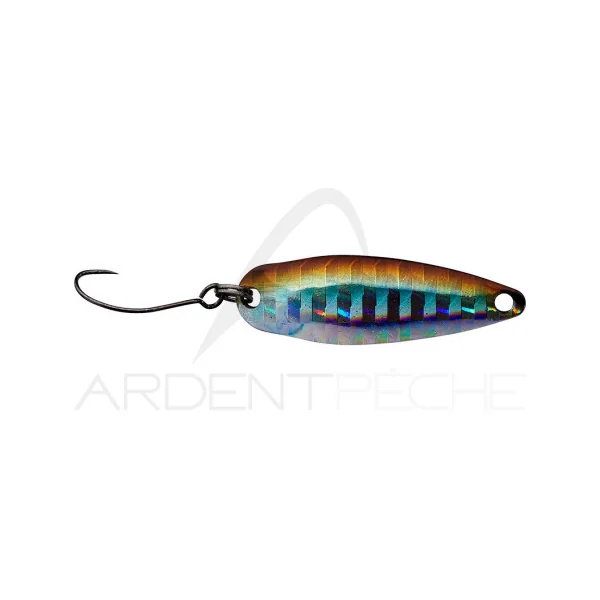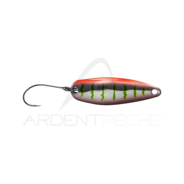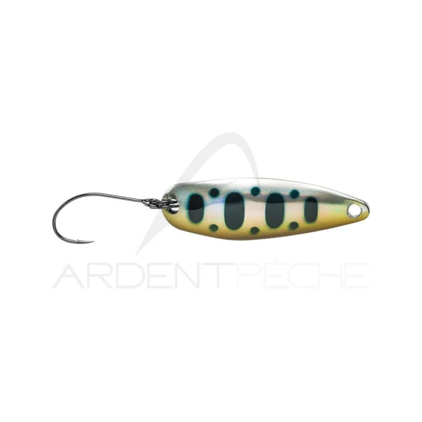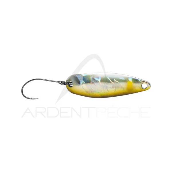 La cuillère ondulante NATIVE possède une nage à large débattement et à forte amplitude, mais de faible intensité. Lors de sa descente, elle oscille avec un effet de rolling susceptible de provoquer, à lui seul, l’attaque d’une truite postée contre une bordure ou sous un obstacle immergé à condition que le leurre soit présenté au plus près de ces structures. La forme effilée et très légèrement galbée de la NATIVE désigne ce modèle à un usage en petite et moyenne rivière. Elle sera efficace sur les parcours relativement lents et peu profonds des rivières, mais également dans les réservoirs.