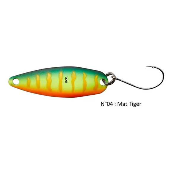 Lors de sa descente, elle oscille avec un effet de rolling susceptible de provoquer, à lui seul, lattaque dune truite postée contre une bordure ou sous un obstacle immergé à condition que le leurre soit présenté au plus près de ces structures.