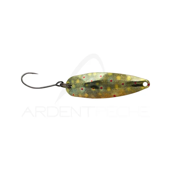 Cette cuiller ondulante révèle tout son potentiel lorsqu’elle est présentée au plus près des structures. Bordures creuses, branches noyées, obstacles immergés ou caches naturelles, elle permet de viser avec précision les postes où les truites se tiennent en embuscade. Son fonctionnement à la descente constitue un véritable avantage pour déclencher des touches réflexes dans ces secteurs techniques.