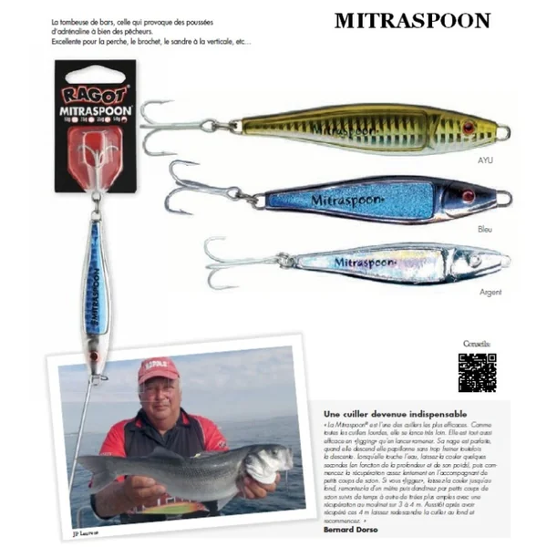 Cuiller Ragot Mitraspoon 85 gr Argent Du bord, depuis une plage ou une pointe rocheuse, en kayak ou en bateau, les cuillers Ragot sont très polyvalentes.