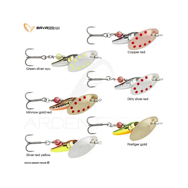 Cuiller tournante in line avec un corps décentré qui viendra nager lui aussi à la récupération. Elle est directement montée avec un rolling pour éviter le vrillage du fil.