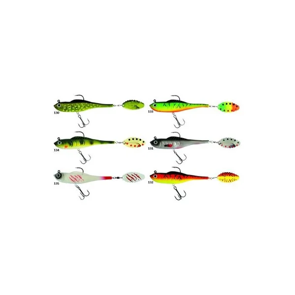 Cuiller Tournante Suissex Shad Spin Blade Nouveau-né de la gamme Suissex, le Shad Spin Blade est un leurre souple en forme de poisson très réaliste et profilé pour des lancers à longues distances. Il est conçu avec une plombée interne, des anneaux brisés renforcés et un émerillon rolling robuste. L’originalité du Shad Spin blade émane de l’utilisation d’une palette tri face N°3 permettant une présentation optimale à la descente du leurre et des vibrations exceptionnelles dès son entrée dans l’eau. Cette forme de palette offre des possibilités d’animations différentes, une récupération très lente en linéaire ou bien une animation en dents de scie avec des tirés et des relâchements.