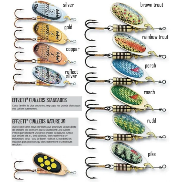 Cuillers de pêche tournantes Effzett N°5 / 10 Gr Dam Les cuillères de pêche tournantes Effzett n°5 / 10 g DAM ont été développées pour la pêche des carnassiers au lancer.