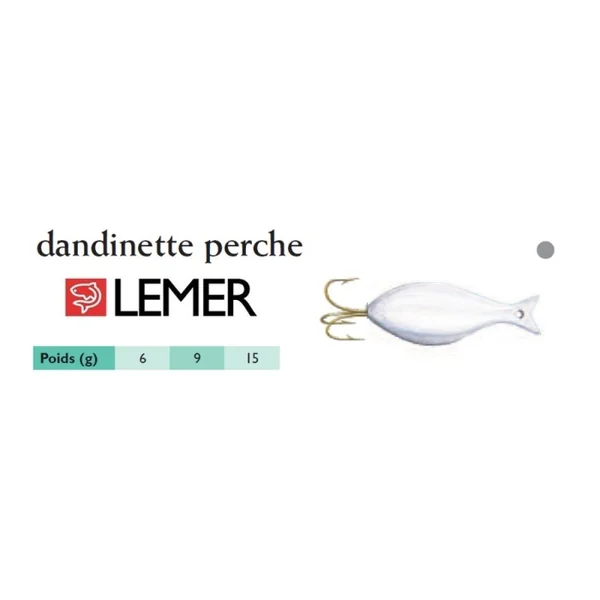 | Dandinette perche hameçon triple | Hameçon triple N°6 > 6 gr > 5 Hameçon triple N°4 > 9 gr > 5 Hameçon triple N°4 > 15 gr > 5 |