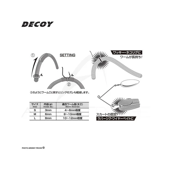 Le Body Ring est un anneau en silicone élastique résistant conçu pour la réalisation de montages en wacky rig. Son utilisation augmente la durée de vie de vos worms. Il pourra également être utilisé pour fixer la jupe en caoutchouc dun spinnerbait.