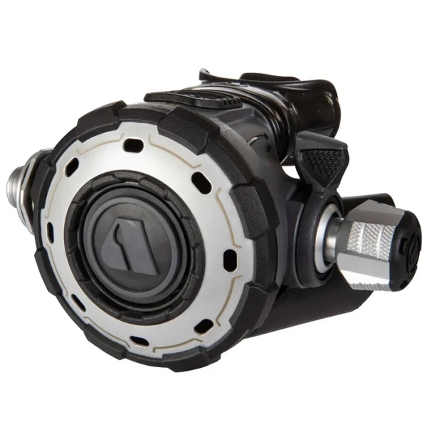 • Modèle unique surcompensé à membrane : lors de la descente, la surcompensation permet à l’air à moyenne pression dans le flexible de circuler plus rapidement qu’à pression ambiante. Les performances sont ainsi meilleures en profondeur.