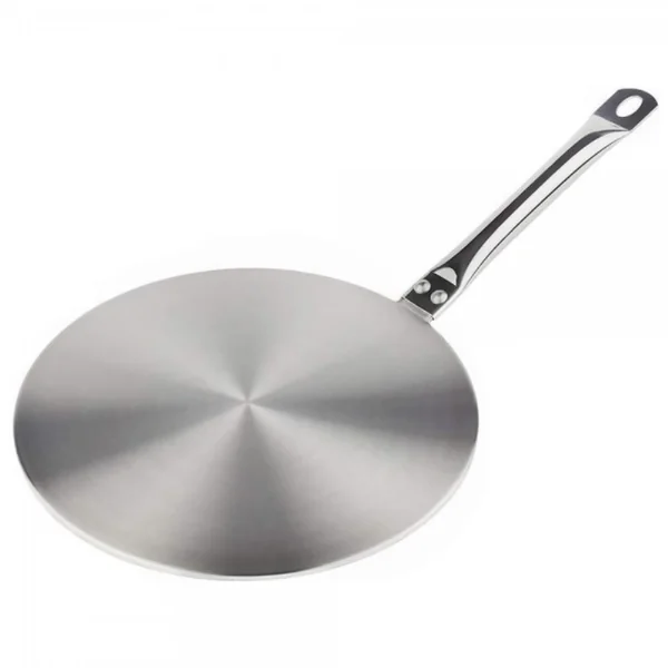 Composition : acier inoxydable. Diamètre : 26 cm. Permet le relai entre les plaques induction et les ustensiles non compatibles. Lavage au lave vaisselle.