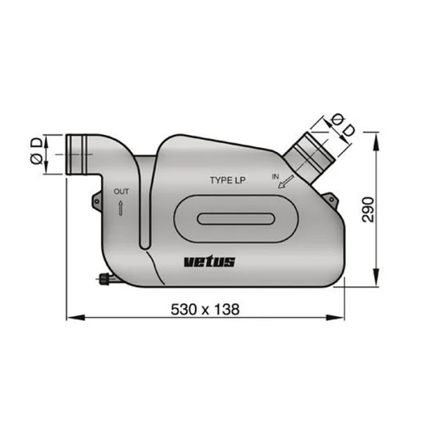 Capacité de 10,5 litres. Caractéristiques Echappement Vetus Waterlock LP – Ø 90 mm