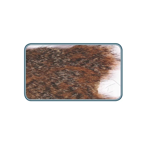 Ecureuil Sur Peau JMC Portions de peau d’écureuil avec une prédominance de gris badger et de roux. Matériau idéal pour réaliser les dubbings de corps ou de thorax d’émergentes, de nymphes ou de noyées.
